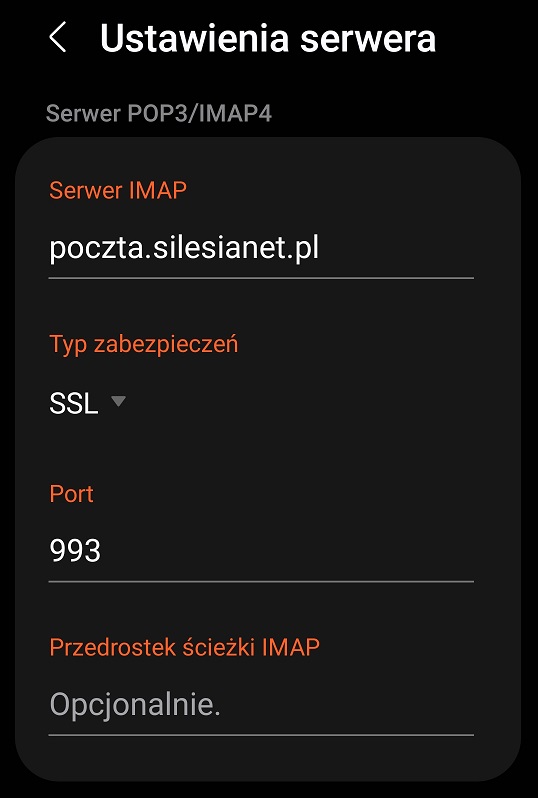 - Serwer poczty przychodzącej POP3: poczta.silesianet.pl